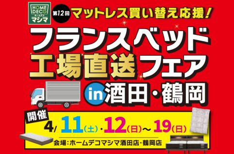 4月11日(土)12日(日)から19日まで「フランスベッド工場直送フェア」in酒田・鶴岡 開催!