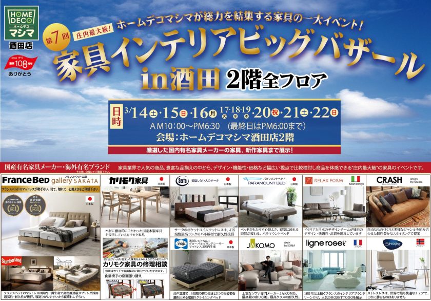 第7回「家具インテリアビッグバザール」期間中、スタッフ一同ご来店をお待ち致しております。